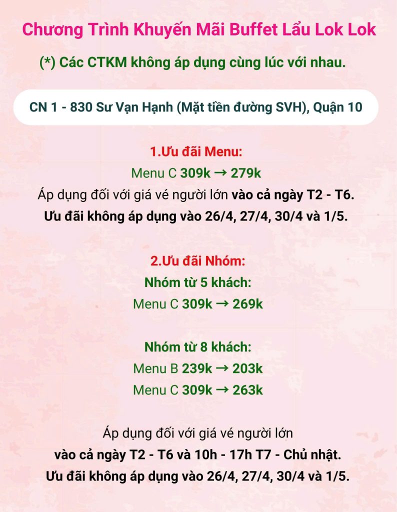 CÁC CHƯƠNG TRÌNH KHUYẾN MÃI ĐƯỢC ÁP DỤNG TẠI :